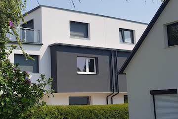 Kunststoff-(Alu)-Fenster PRO Plus passt perfekt zu modernen Häusern mit großen Fensterflächen. Der dezente Fensterrahmen ist überall gleich breit (sog. Falzrahmen). Damit sieht das Fenster einfach gut aus und lässt durch den speziellen Aufbau mehr Licht herein.